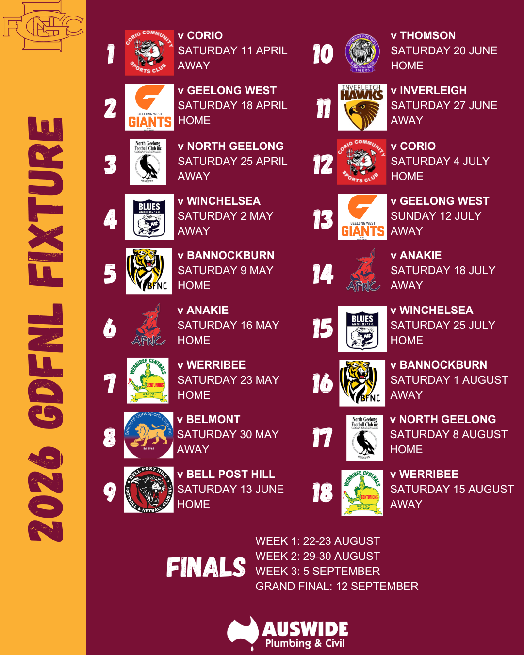 The East Geelong FNC fields Senior and Junior Football and Netball teams across all age groups.