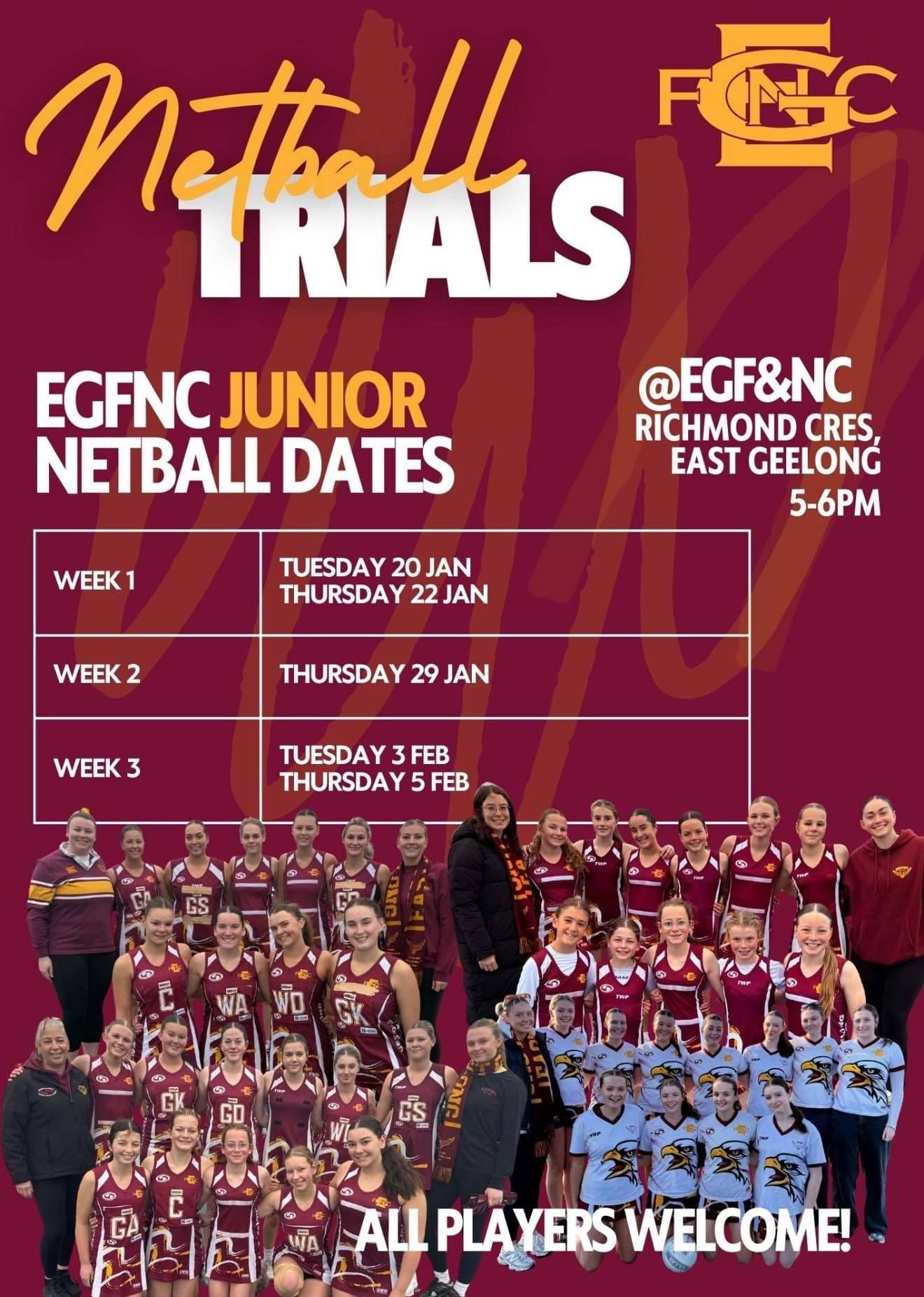 2026 NETBALL TRIAL REGISTRATIONS NOW OPEN! Our East Geelong FNC Netballers are coming off an incredible run — 5 time consecutive Netball Club Champions — and we’re ready to go again in 2026!