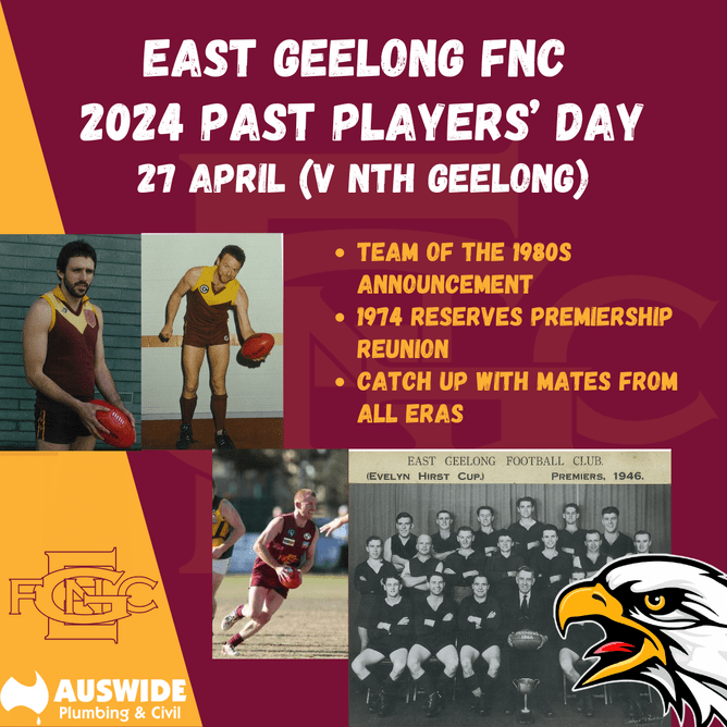 All past players and officials are invited to the North Geelong game on 27 April to celebrate past players day. The "Team of the 80's" will be announced following on from the 70's team in 2023.